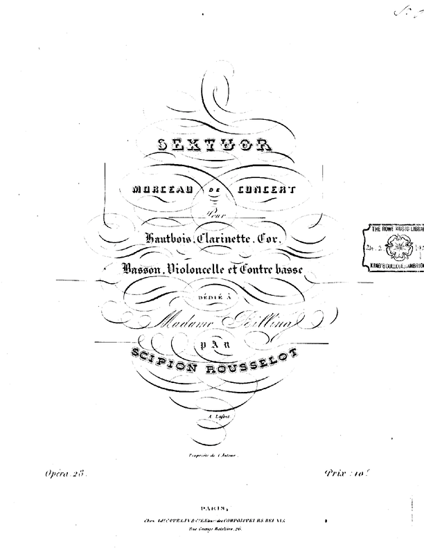 | Alternative. Title | Sextuor. Morceau de concert pour hautbois, clarinette, cor, basson, violoncelle et contre basse |