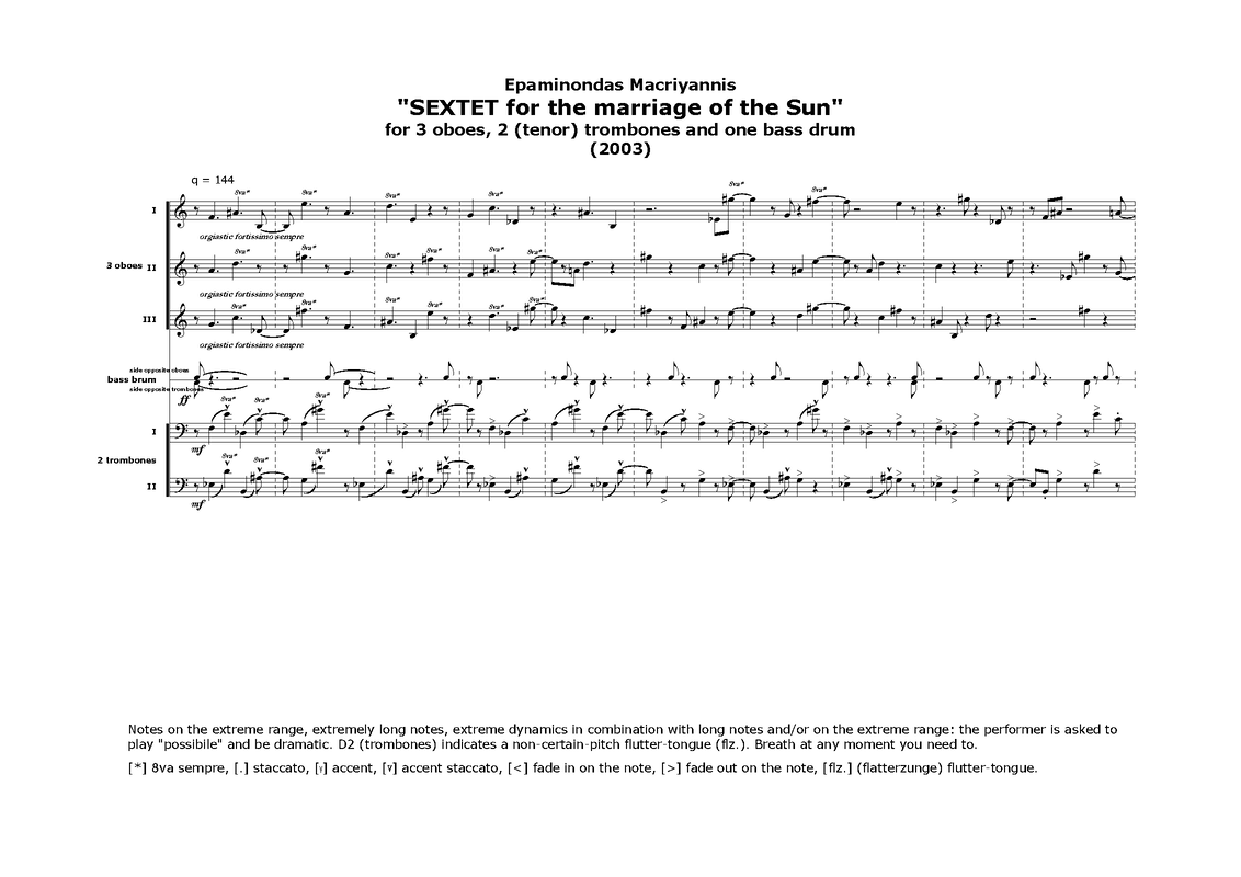| Instrumentation | 3 oboes, 2 trombones, bass drum |