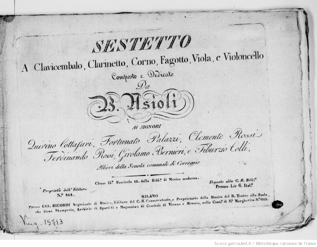 | Alternative. Title | Sestetto a clavicembalo, clarinetto, corno, fagotto, viola e violoncello |