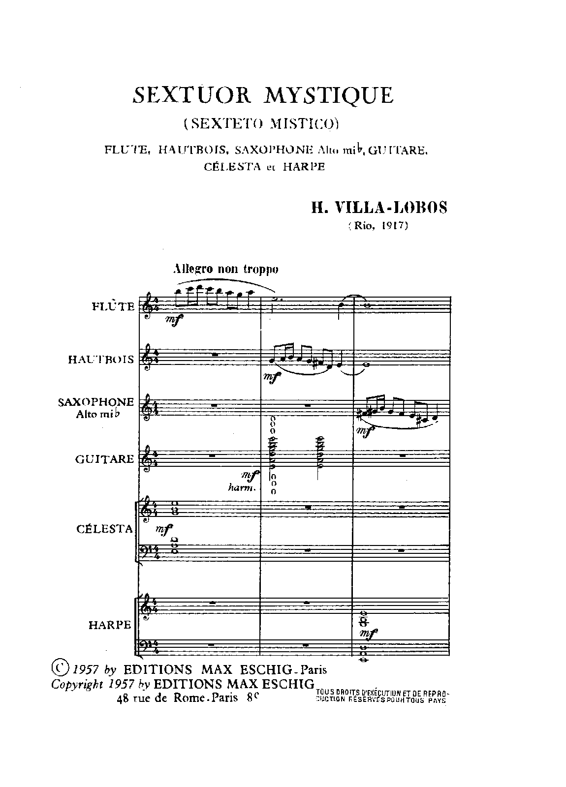 | Genre Categories | Sextets; For flute, oboe, saxophone, celesta, guitar, harp; Scores featuring the flute; |