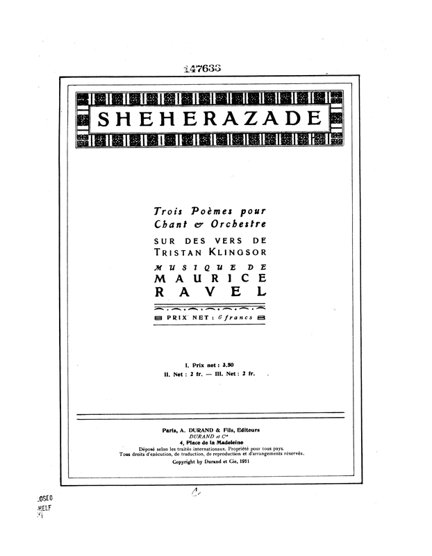 | First Publication. | 1904 - Paris: G. Astruc (vocal score) |