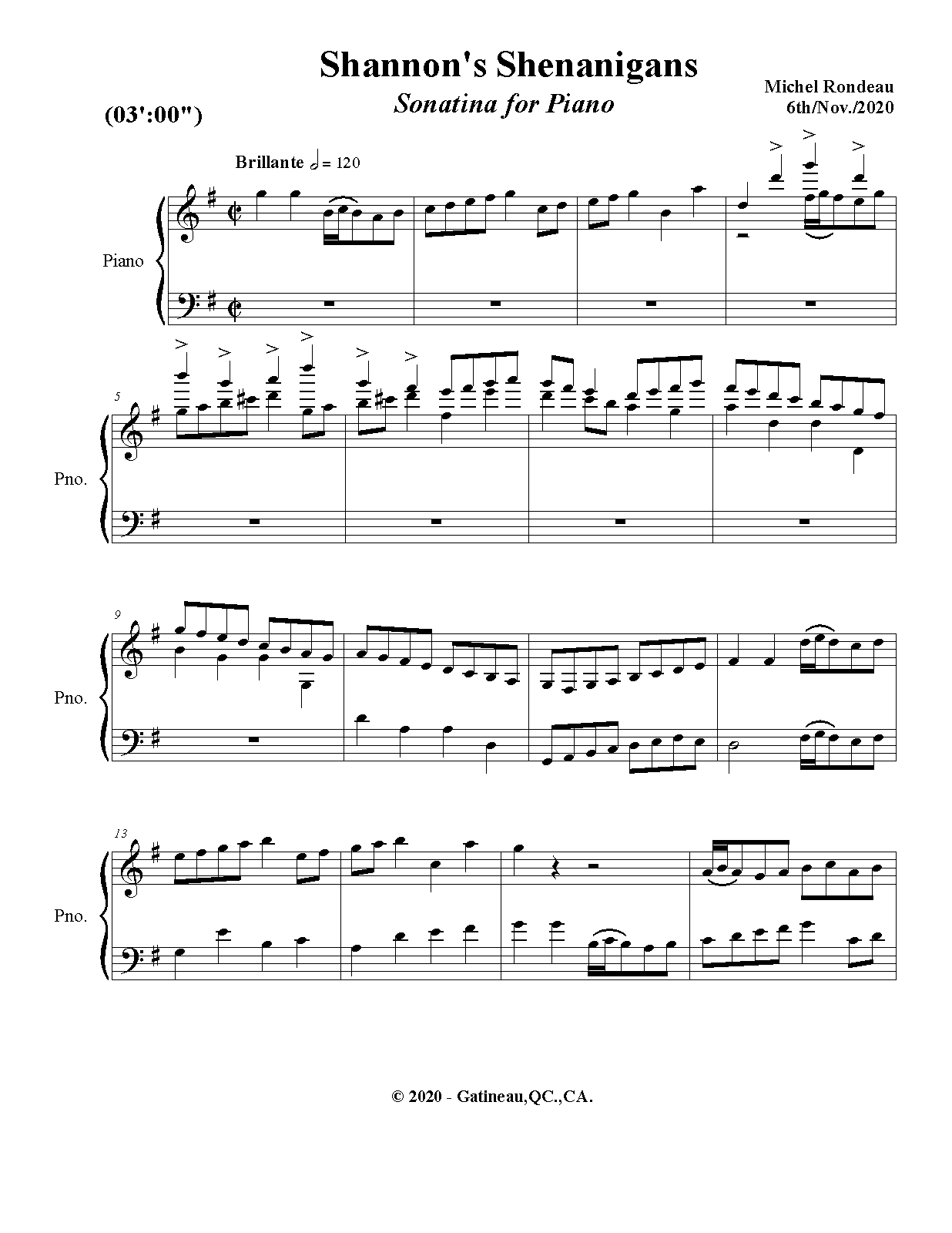 | Movements/SectionsMov'ts/Sec's | 1 sonatina in 3 parts |