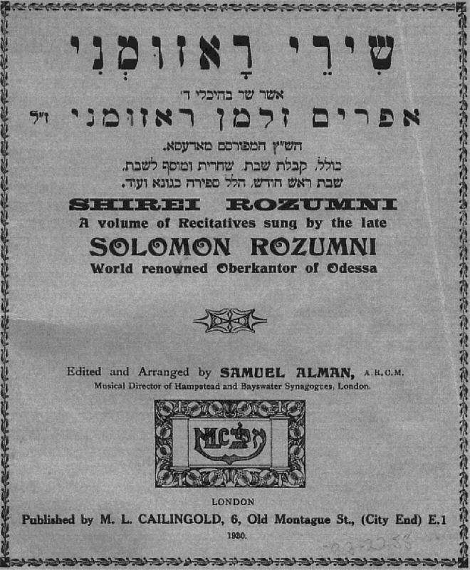 | Alternative. Title | Shirei Rozumni, a Volume of recitatives sung by the late Solomon Rozumni. |