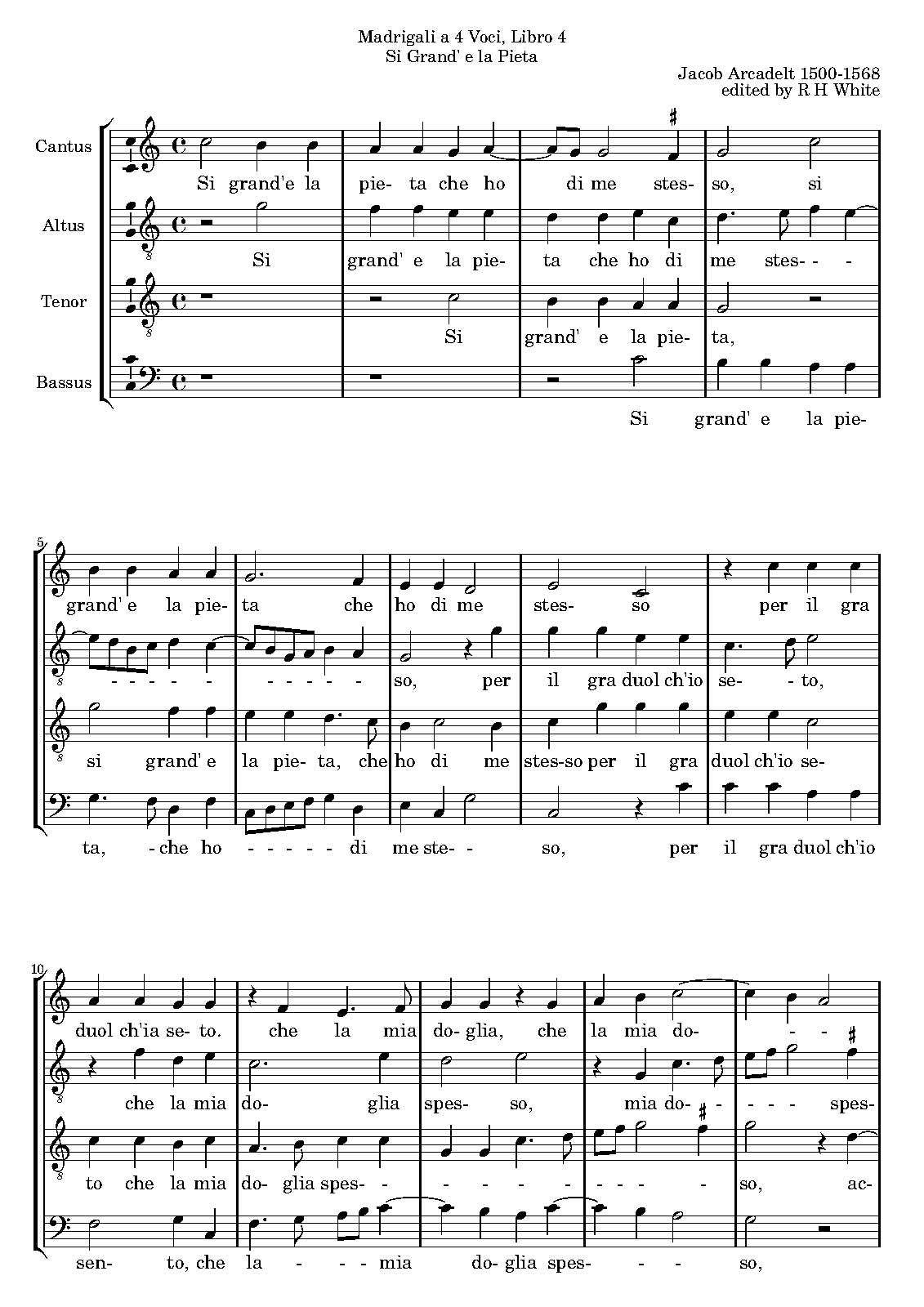 From the collection "Il quarto libro di madrigali d’Archadelt, a quatro voci" published by Antonio Gardane (Gardano), Venice (1539)