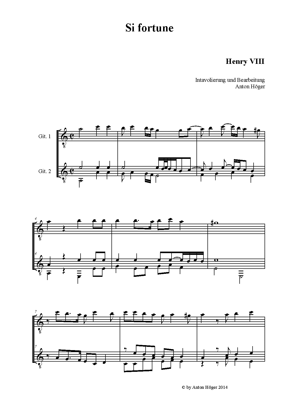 Though Mr. Höger's arrangements give the composer as Henry VIII, there is no evidence that this was written by him, although the piece exists in a manuscript from that time. In CD compilations of consort music from Henry VIII's time, this piece is listed as being by "Anonymous".