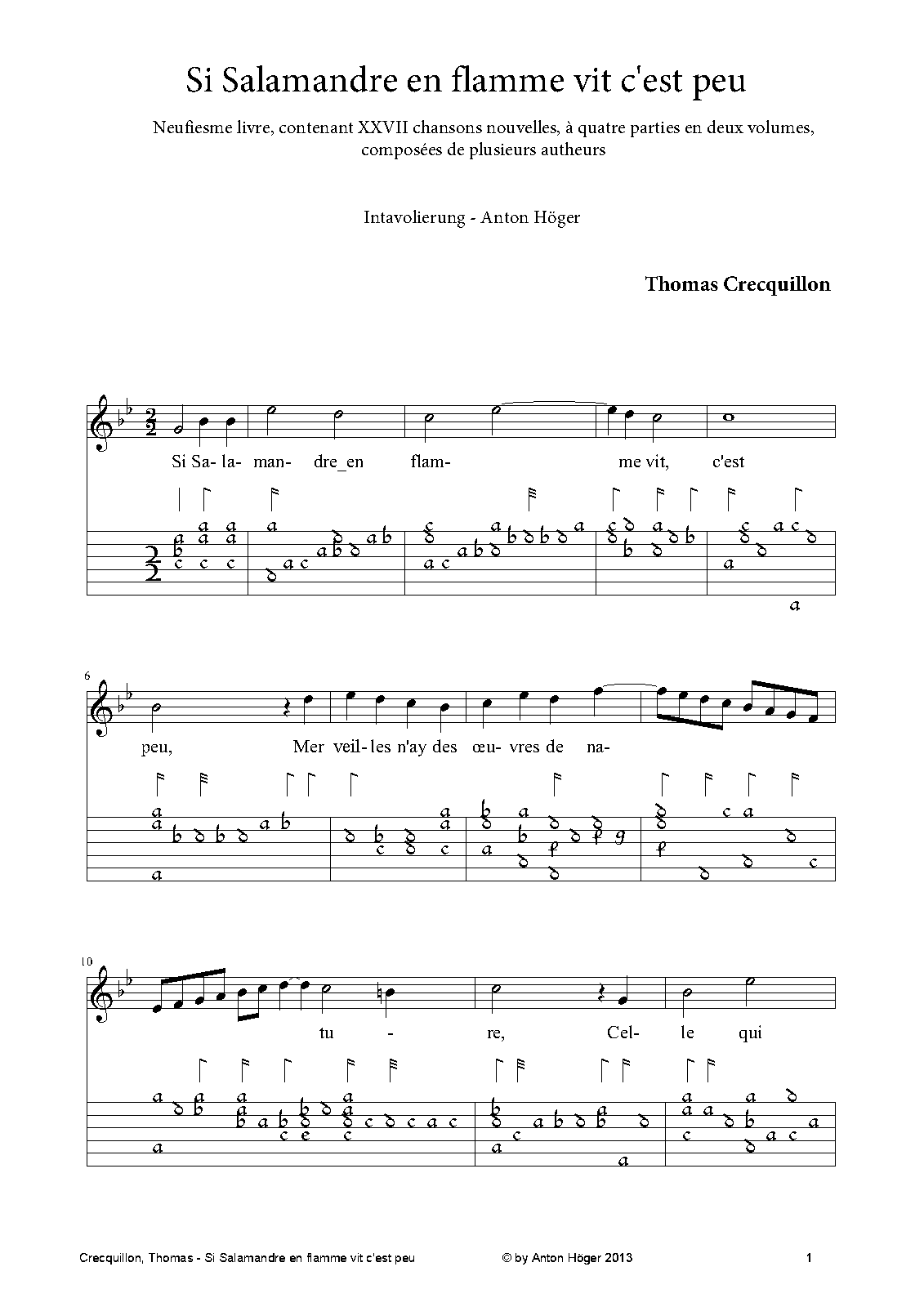 Si salamandre en flamme vit c'est peu (Crecquillon, Thomas)
