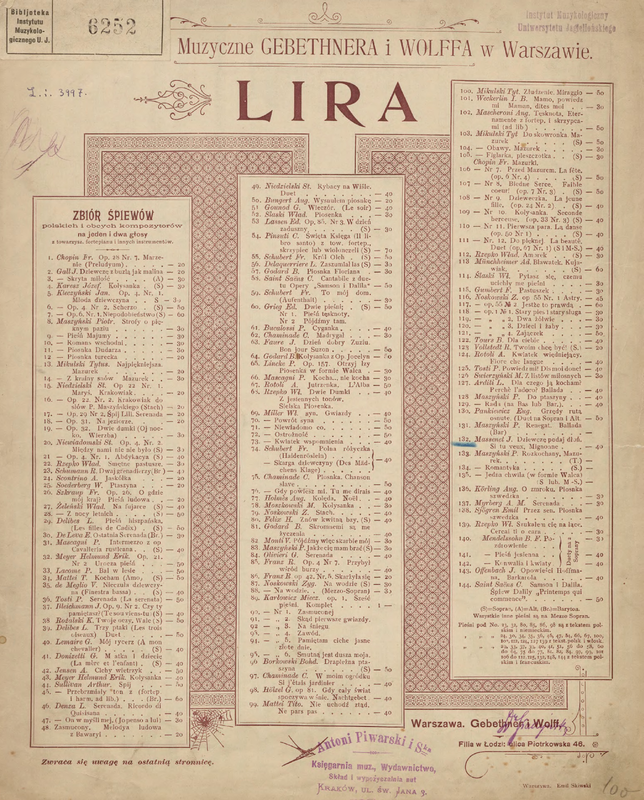 Lira: Zbiór śpiewów, No.132 Warsaw: Gebethner and Wolff, 1898. Plate G 2175 W.