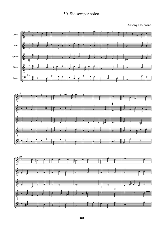 | Instrumentation | 5 instruments - viols, violins, or wind instruments (recorders, crumhorns, cornetts etc.) |