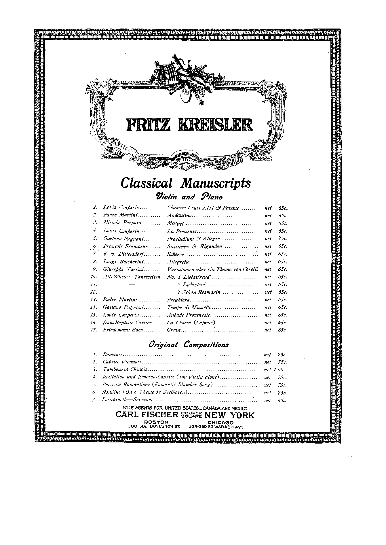| Extra Information | Falsely attributed by Kreisler to François Francœur (1698-1787), Included in the category Intermediate Works for Violin. The violin part(s) is in 1st to 3rd position. |