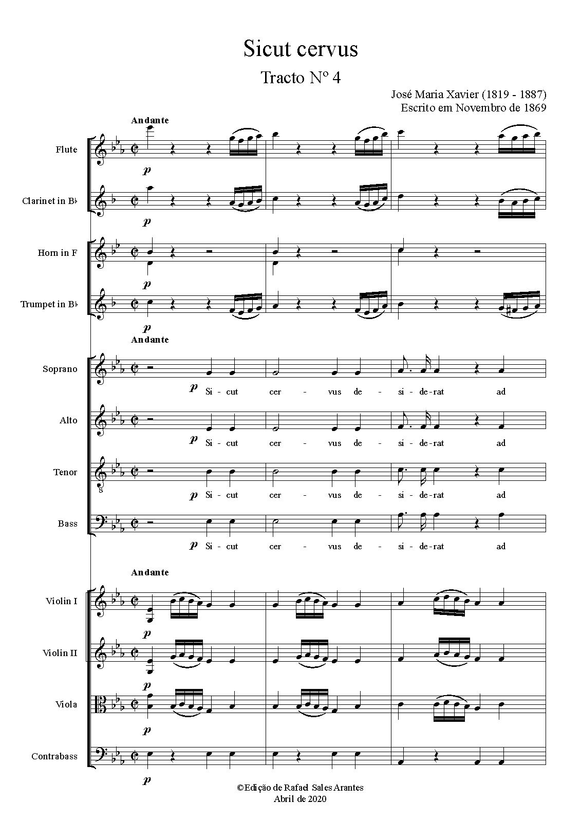 | Instrumentation | Voices: mixed chorus (SATB) Orchestra: flute, clarinet (B♭), 2 horns (F/C), trumpet (B♭), strings |