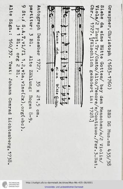 | Work Title | Siehe da eine Hütte Gottes, GWV 1107/27 |