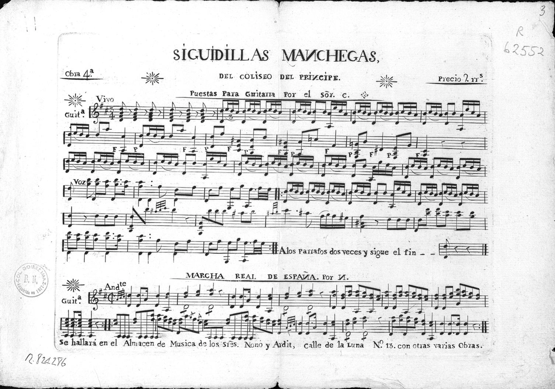 The guitar score also includes his guitar version of the Marcha Real de España (Spanish national anthem).