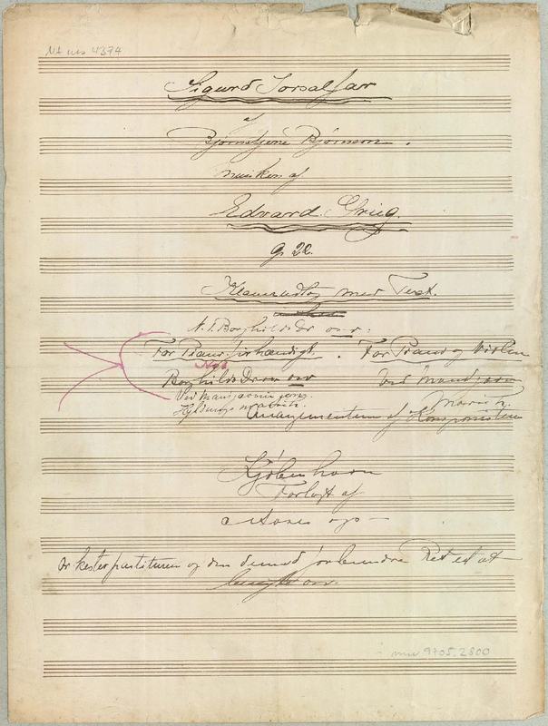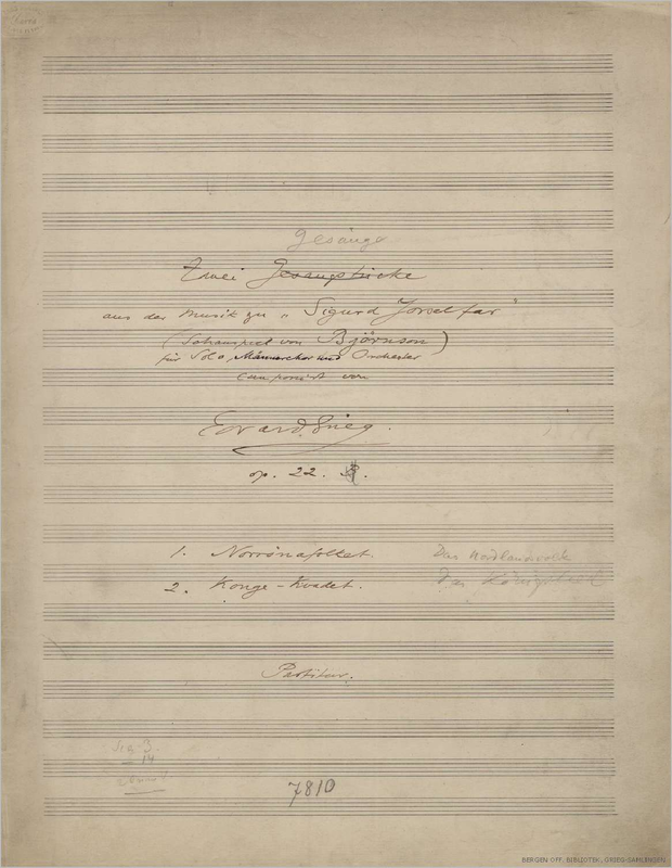 Alternative. Title Incidental music for Bjørnson's play; Scenemusikk til Bjørnstjerne Bjørnsons skuespill; Bühnenmusik zu Bjørnsons Schauspiel