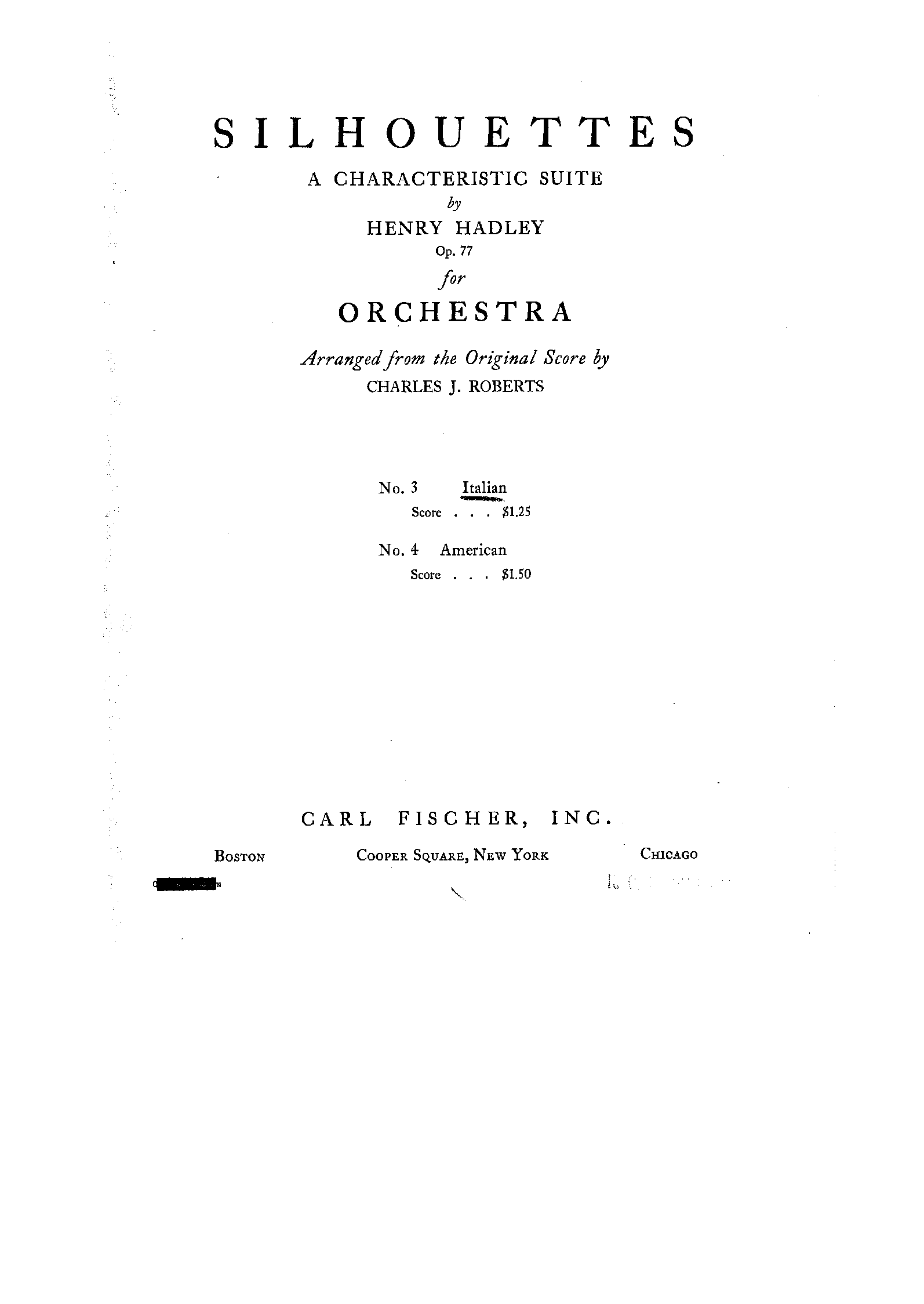 New York: Carl Fischer, 1919. Plates 02356–7.