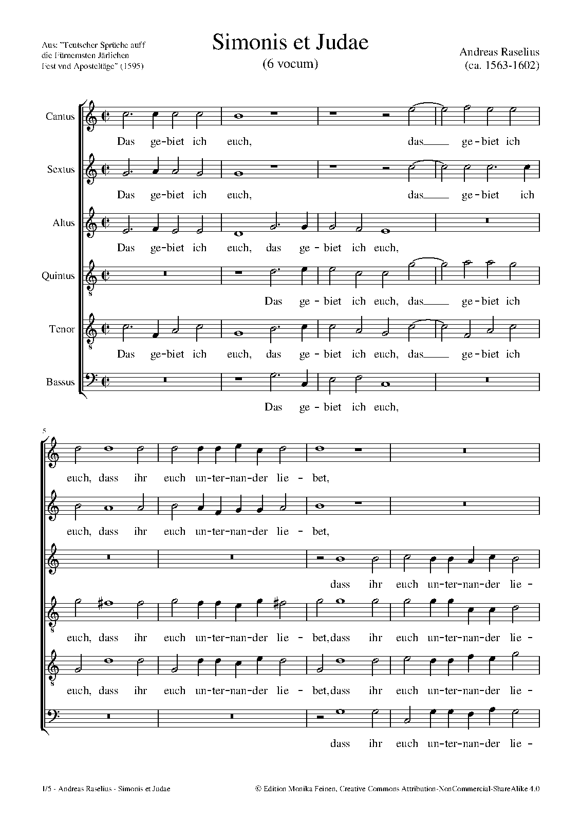 | First Publication | 1595 in Teutscher Sprüche auff die Fürnemsten Järlichen Fest vnd Aposteltäge |