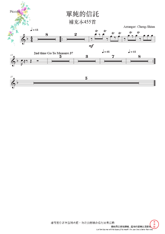 ⇒ 27 more: Flute 1/2 • Oboe 1/2 • English Horn • Piccolo Clarinet (E♭) • Clarinet 1/2 (B♭) • Bass Clarinet (B♭) • Bassoon 1/2 • Contrabassoon • Horn 1/3 (F) • Horn 2/4 (F) • Trumpet 1/2 (B♭) • Trombone 1/2 • Bass Trombone • Tuba • Timpani • Percussion • Harp • Piano • Soprano • Alto • Tenor • Bass • Violins I • Violins II • Violas • Cellos • Basses