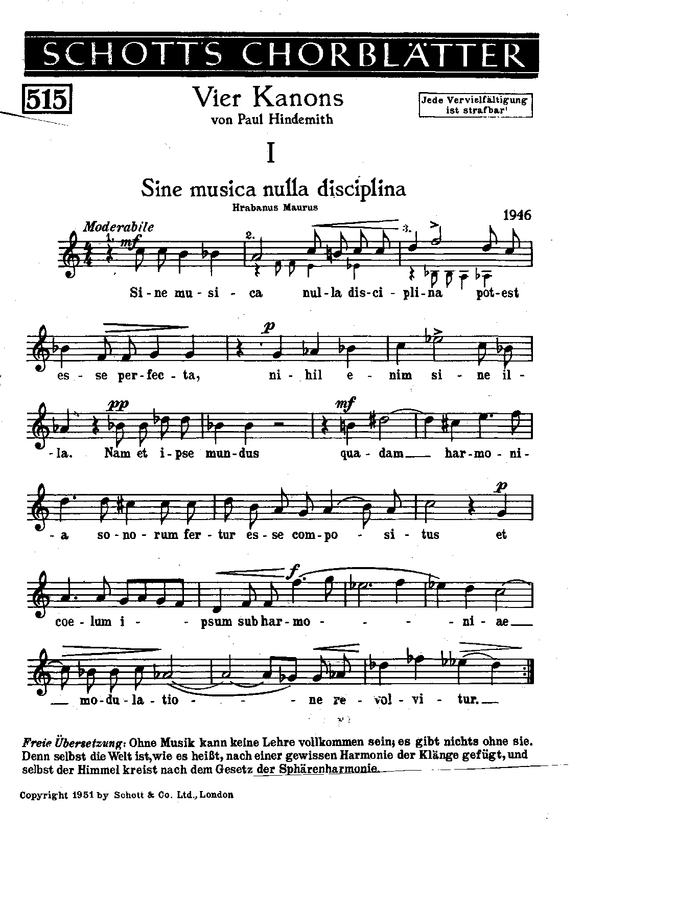 | Related Works | Part of a set of four seperate canons including Musica divinas laudes and 2 canons from the Acht Kanons of Sing und Spielmusik für Liebhaber und Musikfreunde, Op.45 (No.2) |