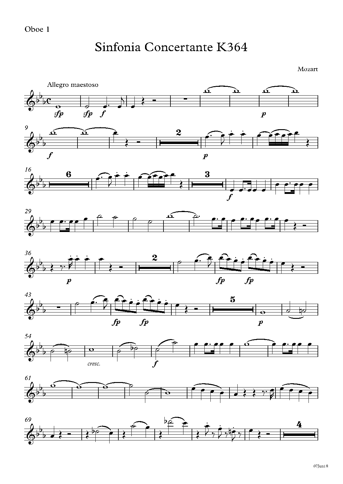 | Extra Information | The Sinfonia Concertante is written in E♭ major but the solo viola part was originally written a semitone lower in D, to be played “scordatura”; the soloist was to tune the viola a semitone higher to make the instrument sound brighter. |