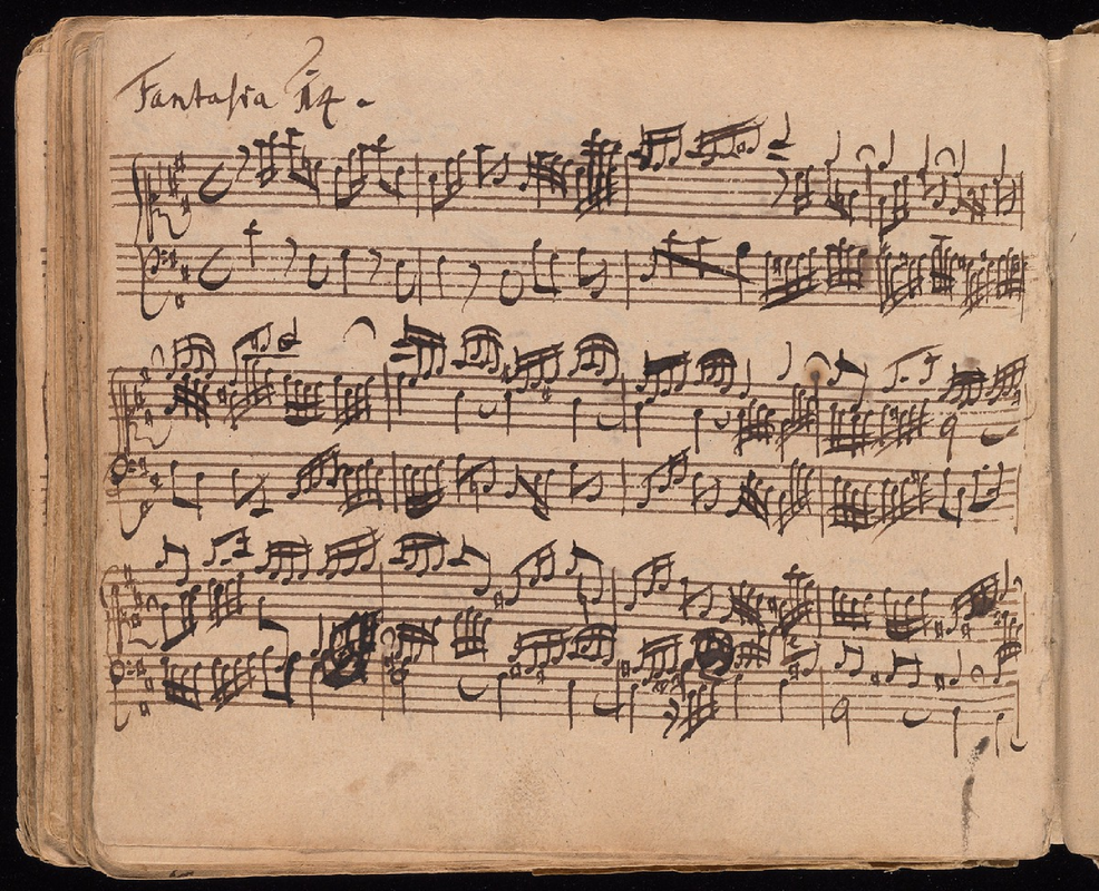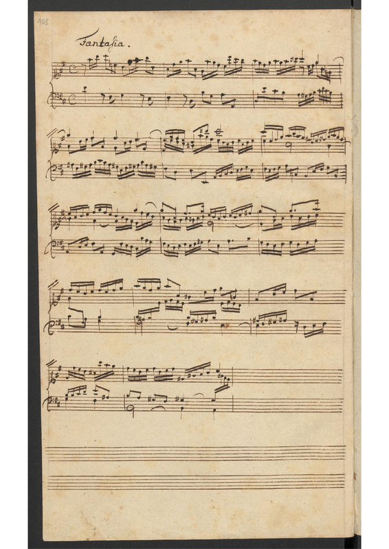 Misc. Notes 600 dpi. Page size is 10.00 x 12.688 inches. Part of the Klavierbüchlein für Wilhelm Friedemann Bach (No.62). The "Fantasia" is an alternate name to the "Sinfonia" specific to the W.F. Bach Piano Book Collection. This edition in manuscript form was partially missing from the collection, so part of the notation after bar 12 of the notation is in smaller font.