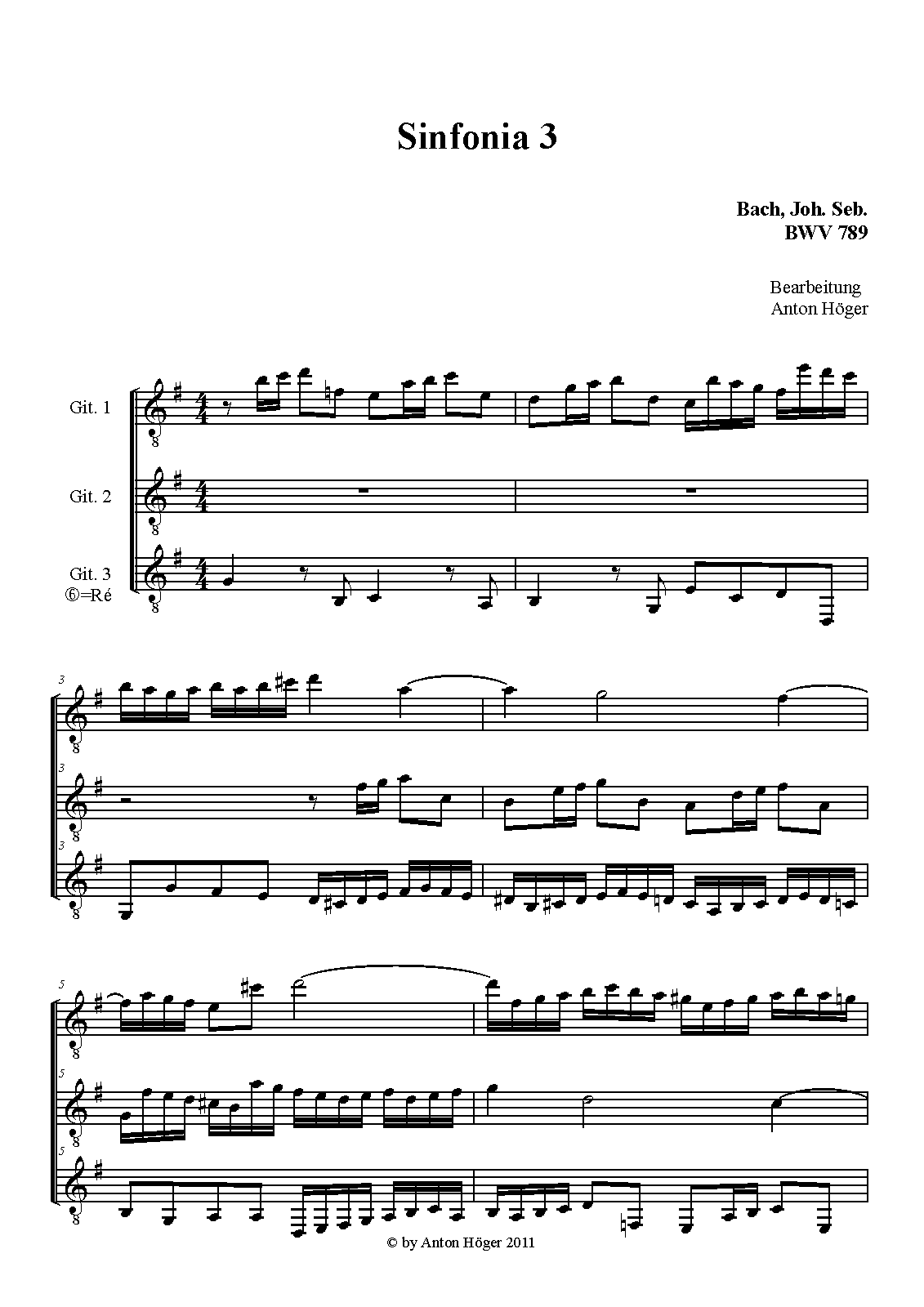 First Publication. 1801 in 15 Sinfonias, BWV 787-801 (No.3)