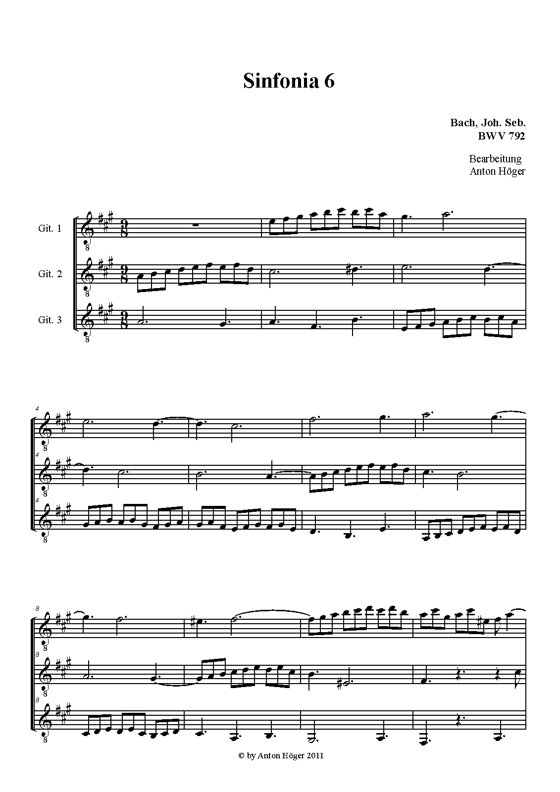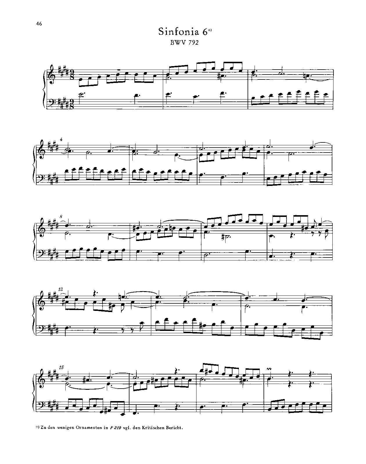 First Publication. 1801 in 15 Sinfonias, BWV 787-801 (No.6)