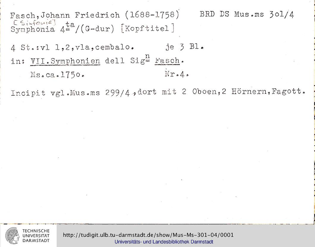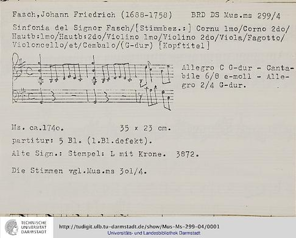 | Instrumentation | 2 oboes, bassoon, 2 horns, strings, basso continuo |