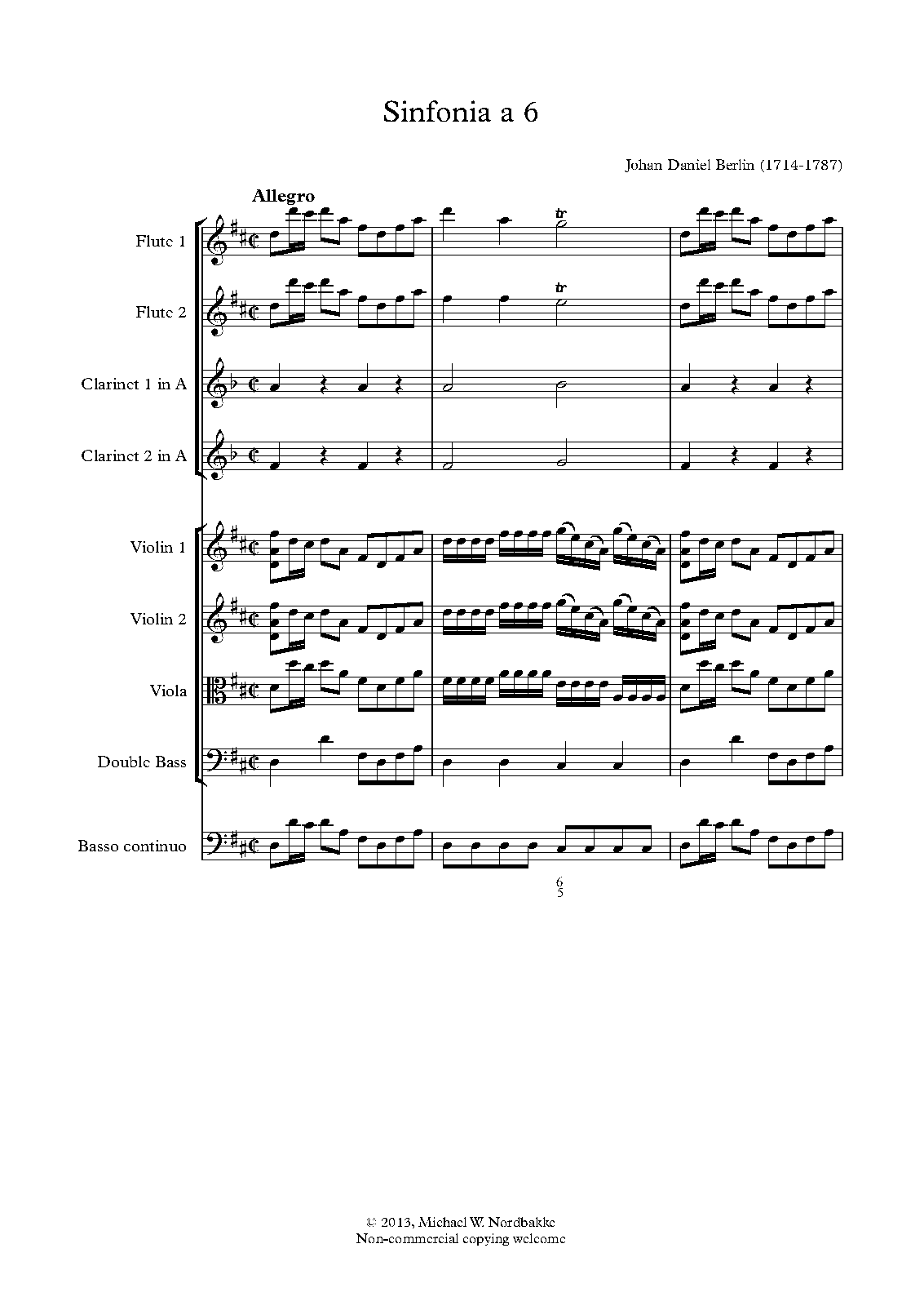 | Instrumentation | 2 flutes, 2 clarinets in A, strings, continuo |
