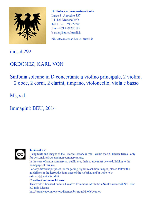 | Composer | Ordonez, Johann Karl von |