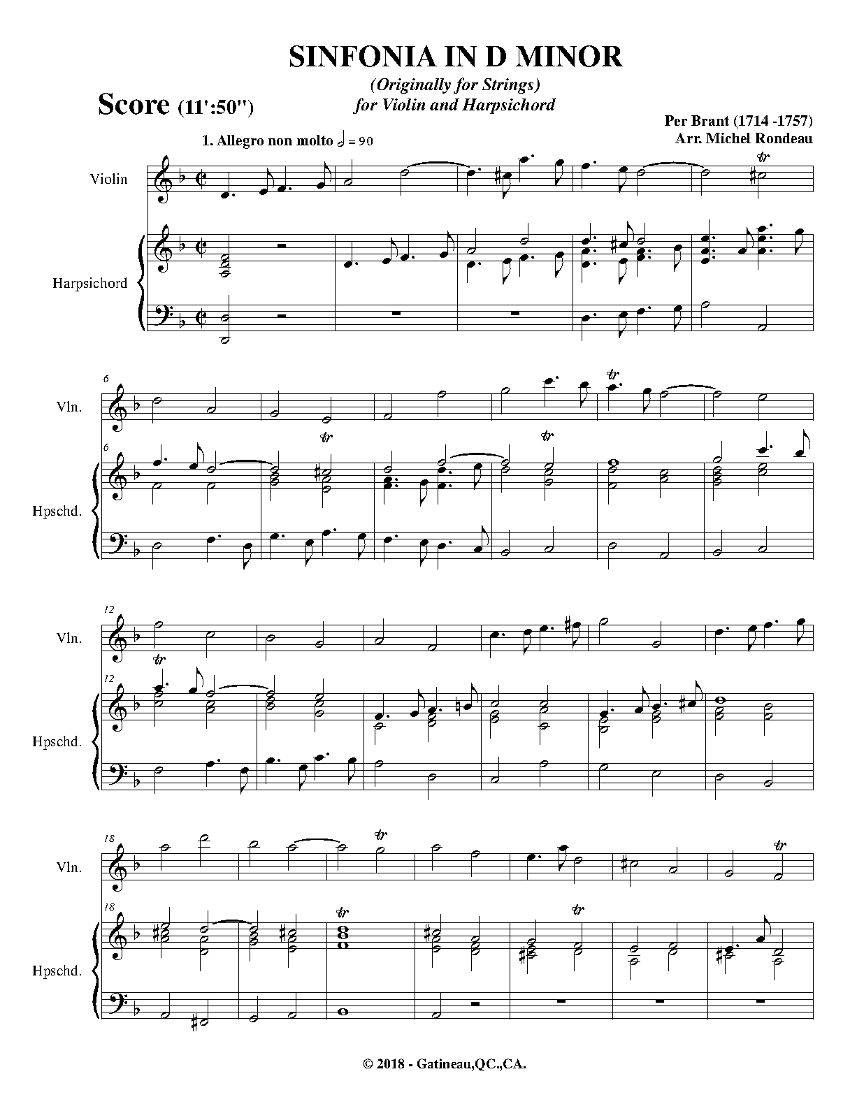 | Work Title | Sinfonia in D in 4 Voices |