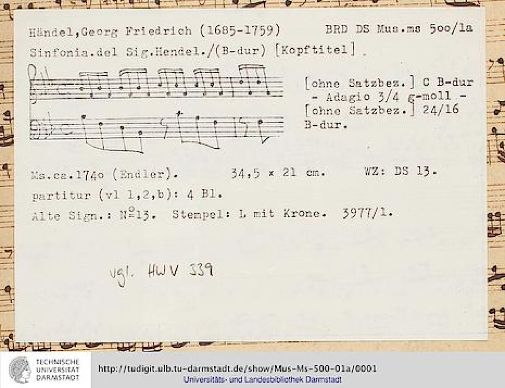 Opus/Catalogue NumberOp./Cat. No. HWV 339