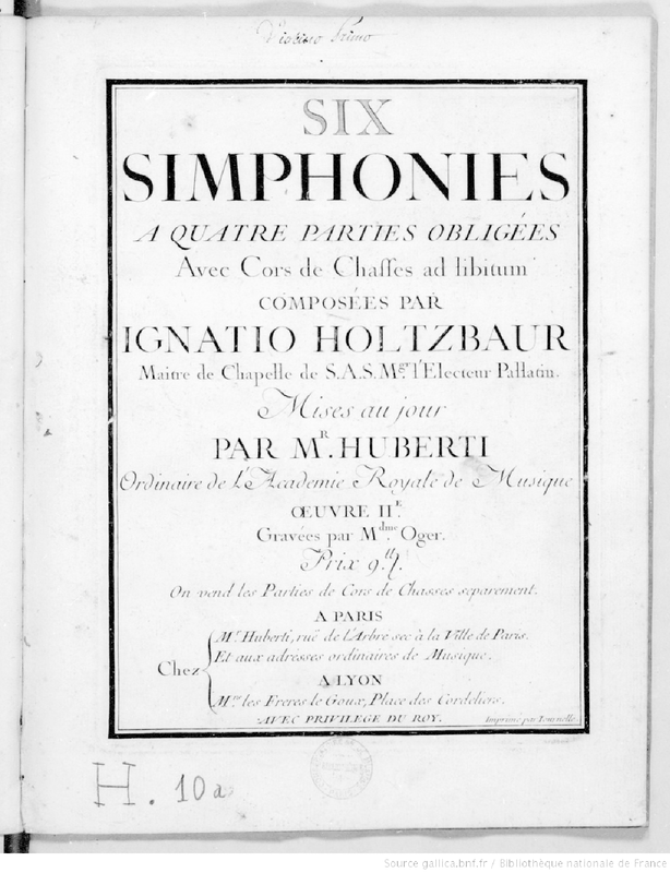 | Alternative. Title | Six simphonies à quatre parties obligées avec cors de chasses ad libitum |