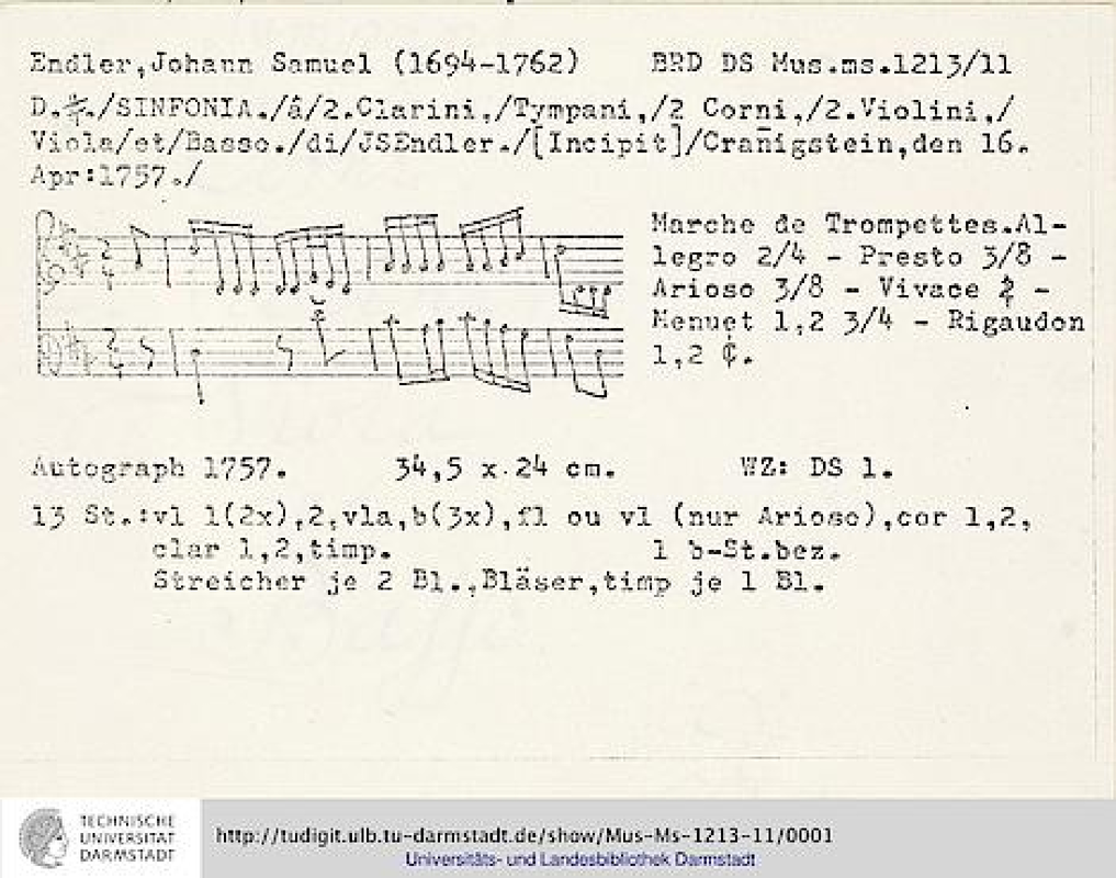 | Composer | Endler, Johann Samuel |