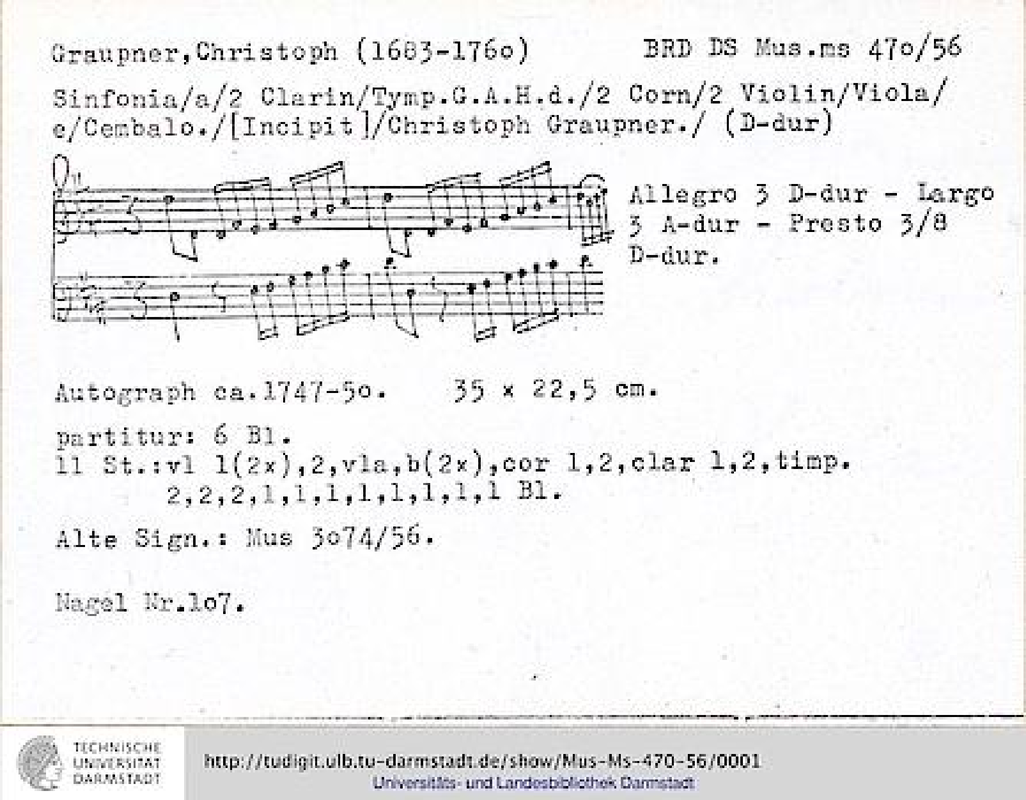 | Instrumentation | 2 trumpets, 2 horns, timpani, strings, basso continuo |