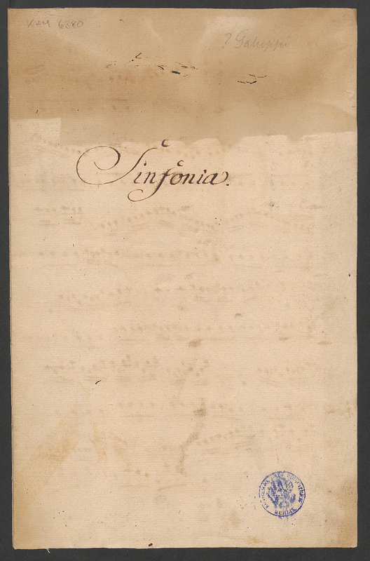 Listed as an arrangement on RISM possibly of an Opera Overture by Galuppi. Galuppi's name is written in pencil on the cover page by a later hand.