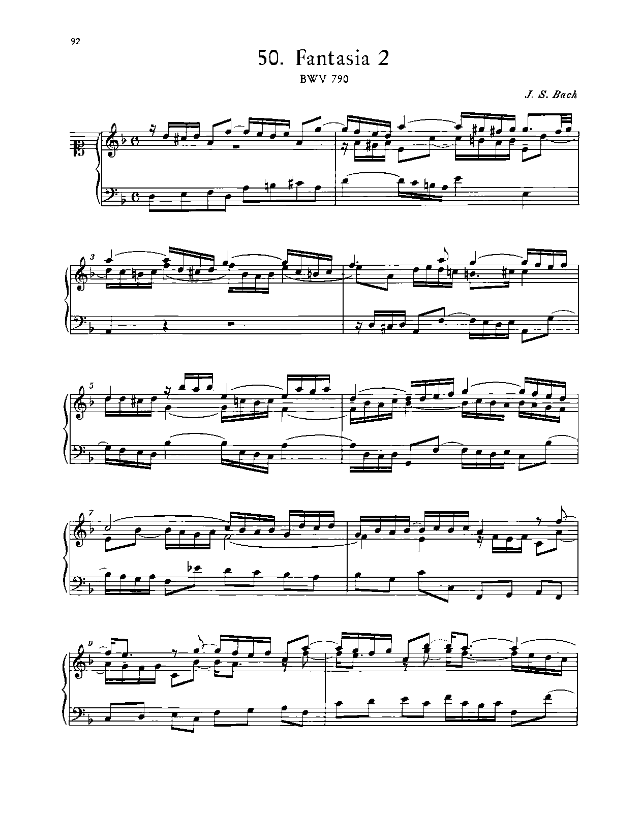 Misc. Notes 600 dpi. Page size is 10.00 x 12.688 inches. Part of the Klavierbüchlein für Wilhelm Friedemann Bach (No.50). The "Fantasia" is an alternate name to the "Sinfonia" specific to the W.F. Bach Piano Book Collection.