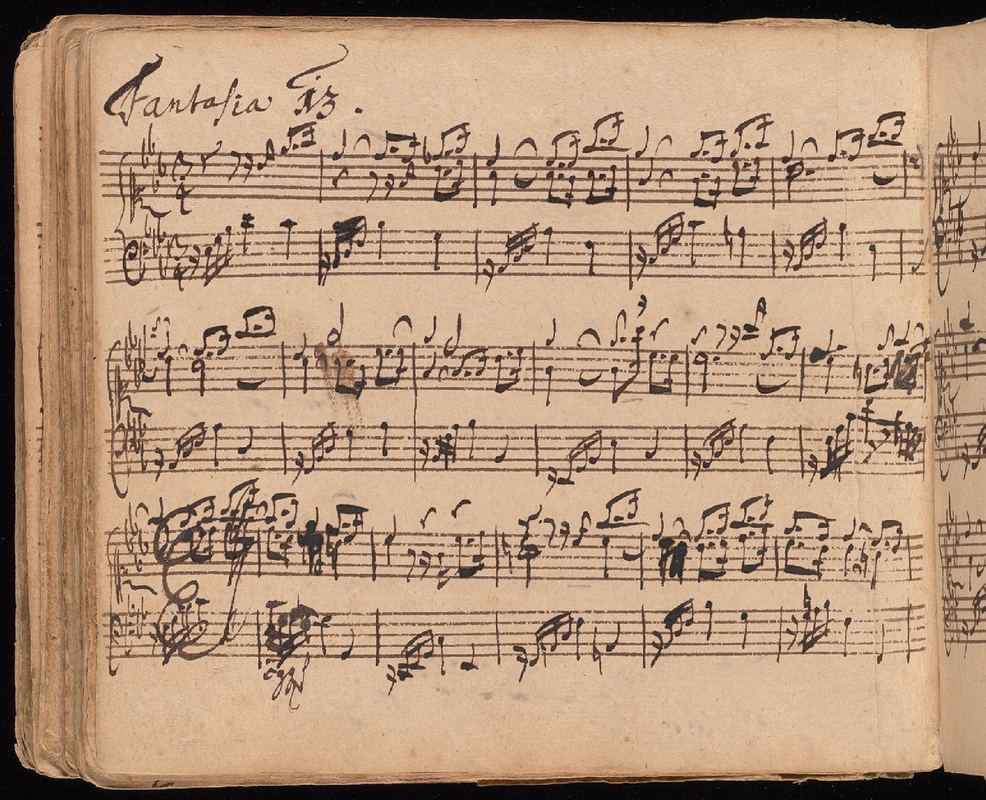 Misc. Notes 600 dpi. Page size is 10.00 x 12.688 inches. Part of the Klavierbüchlein für Wilhelm Friedemann Bach (No.61). The "Fantasia" is an alternate name to the "Sinfonia" specific to the W.F. Bach Piano Book Collection.
