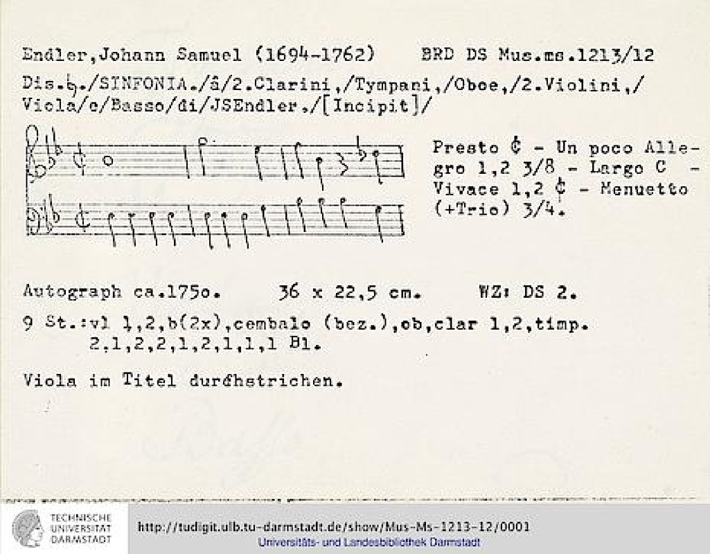 | Movements/SectionsMov'ts/Sec's | Presto - Un poco Allegro 1,2 - Largo - Vivace 1,2 - Menuetto |