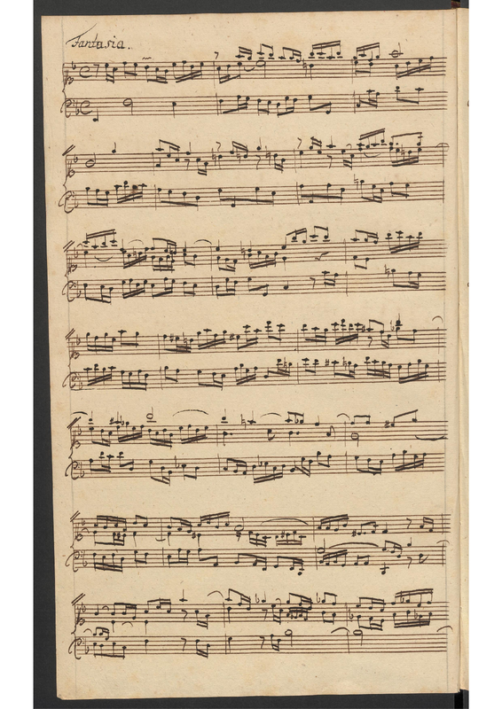 Misc. Notes 600 dpi. Page size is 10.00 x 12.688 inches. Part of the Klavierbüchlein für Wilhelm Friedemann Bach (No.52). The "Fantasia" is an alternate name to the "Sinfonia" specific to the W.F. Bach Piano Book Collection.