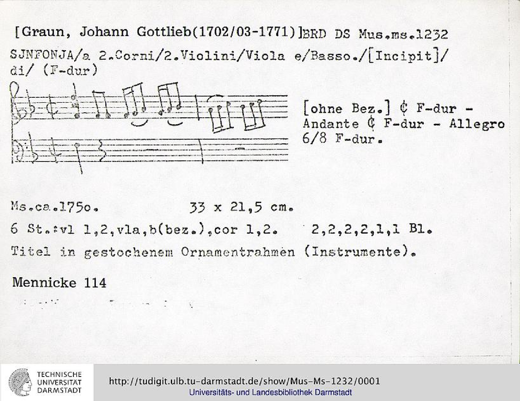 | Opus/Catalogue NumberOp./Cat. No. | GraunWV D:XII:104 ; MenH 6.114 |
