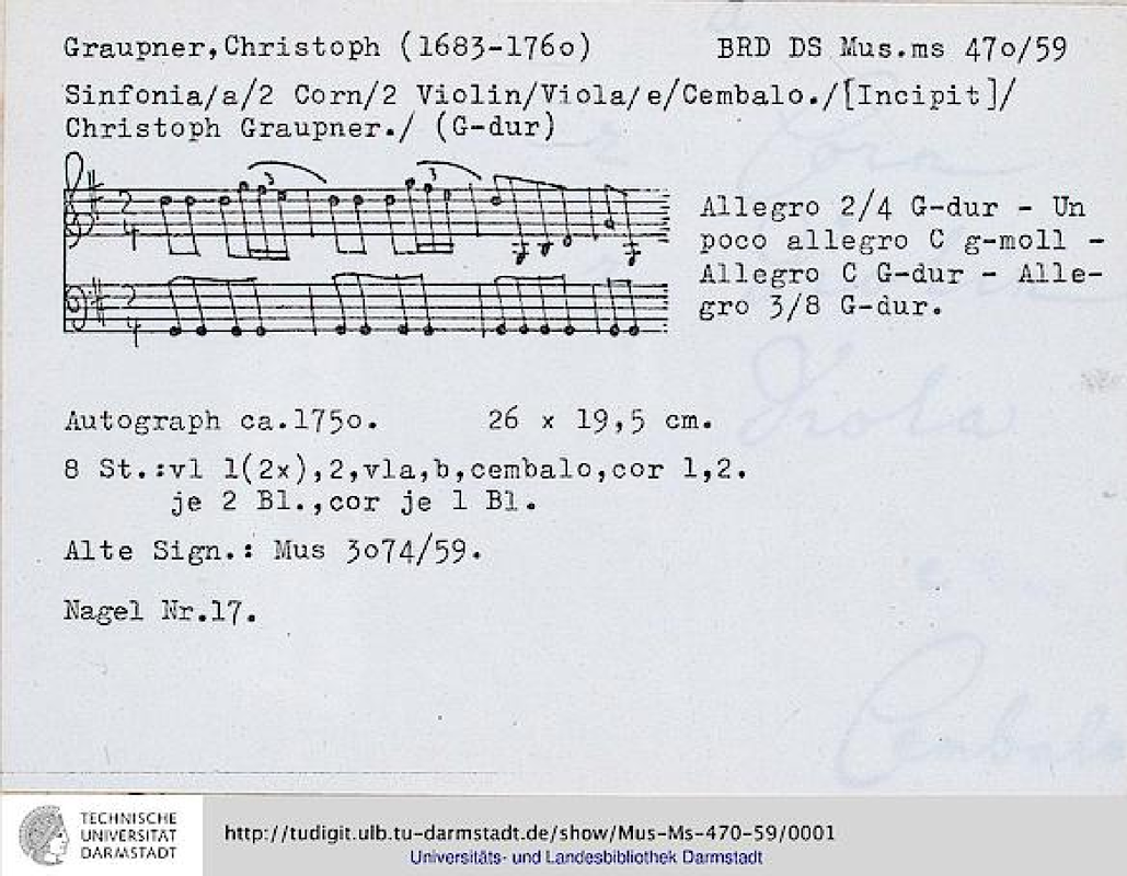 | Opus/Catalogue NumberOp./Cat. No. | GWV 587 |
