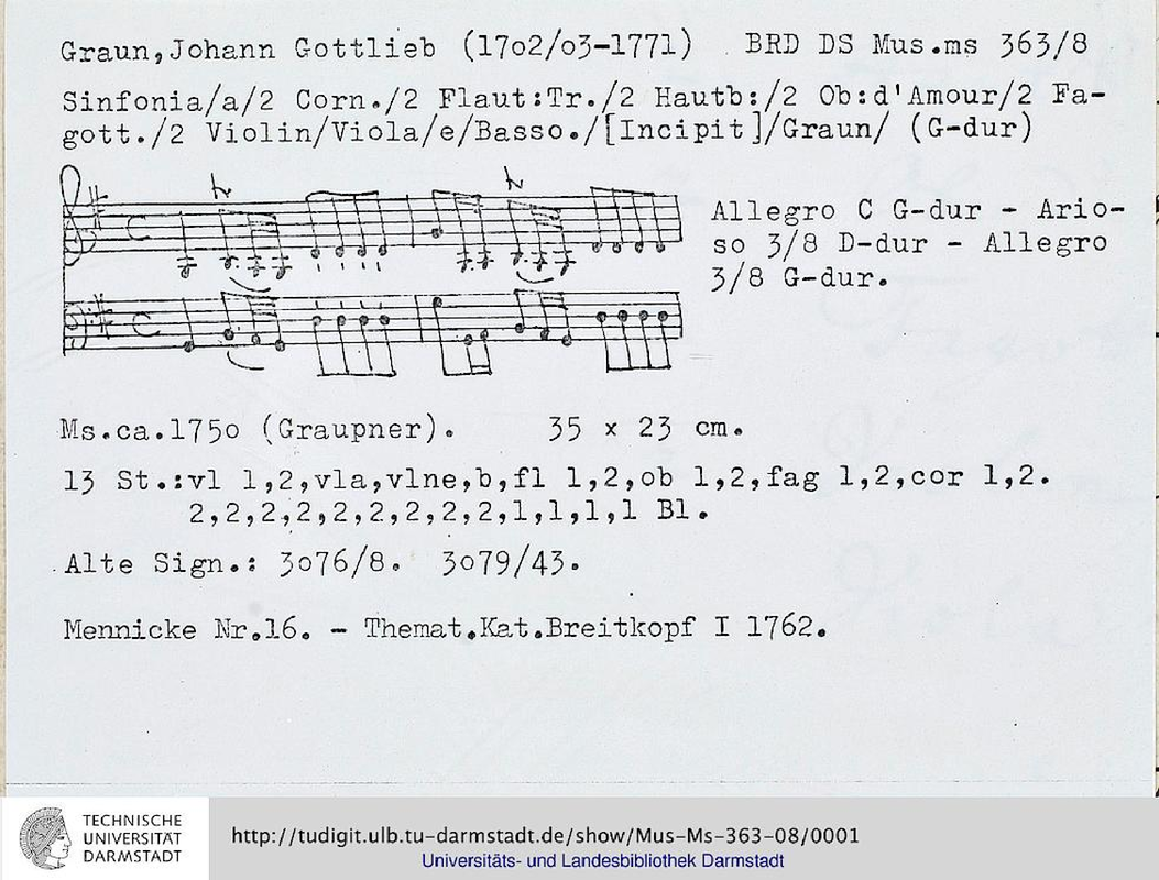 | Opus/Catalogue NumberOp./Cat. No. | GraunWV A:XII:22 ; MenH 6.16 |