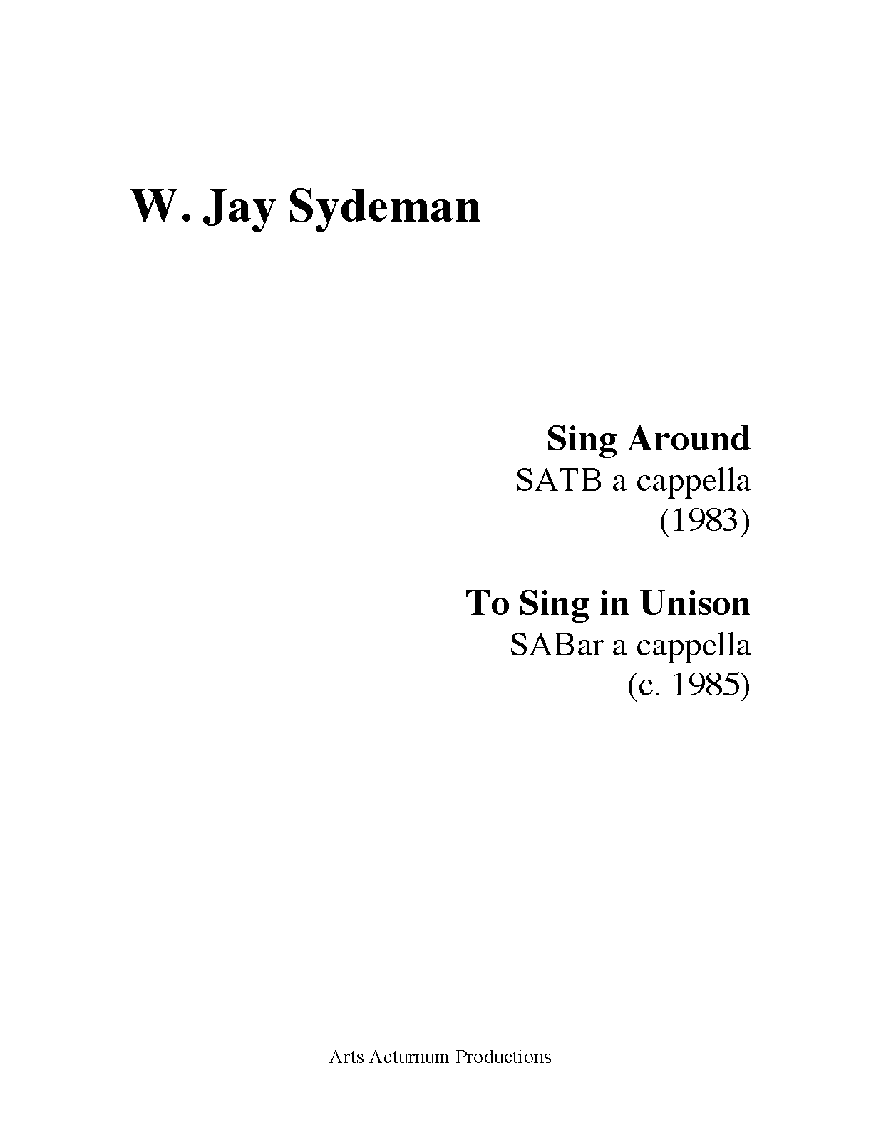 | Composer | Sydeman, William Jay |