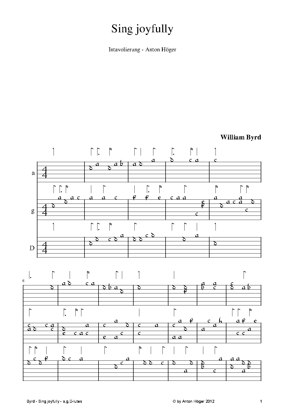Intavolation in french Lute-tabulatur for 3 lutes (a-lute; g-lute; D-lute). If performed I would look forward about a small reference to my efforts.