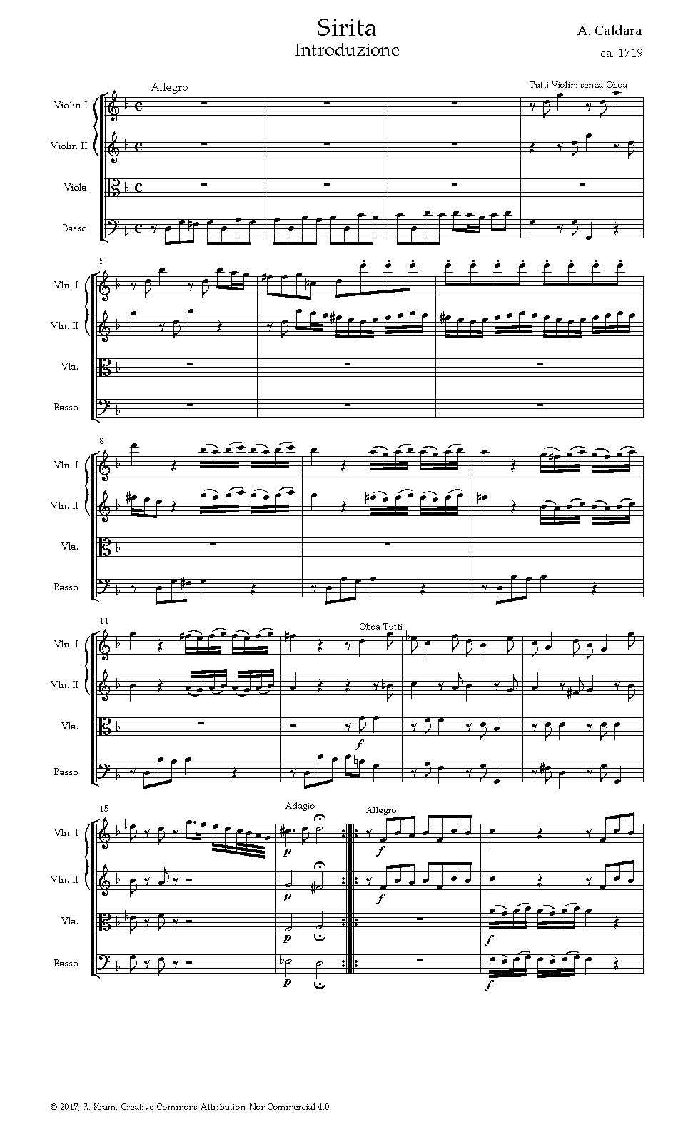 - 2 oboes, bassoon, 4 trumpets, timpani, strings, continuo