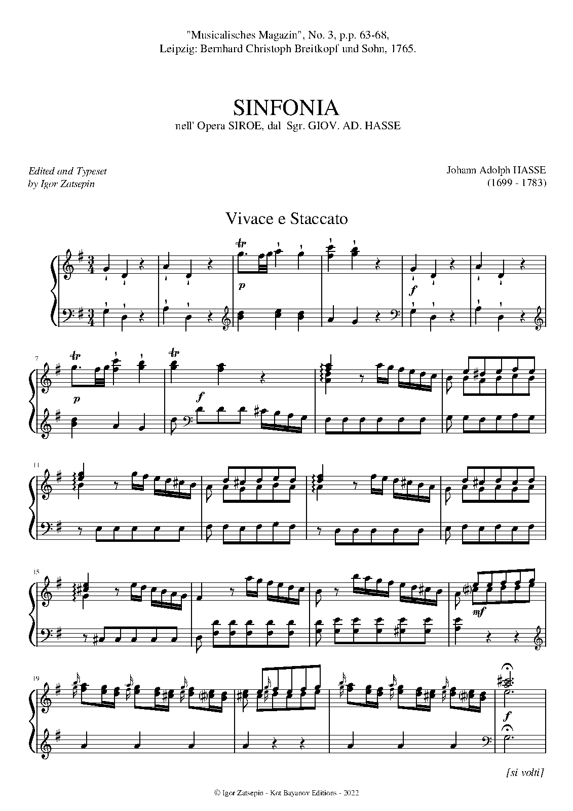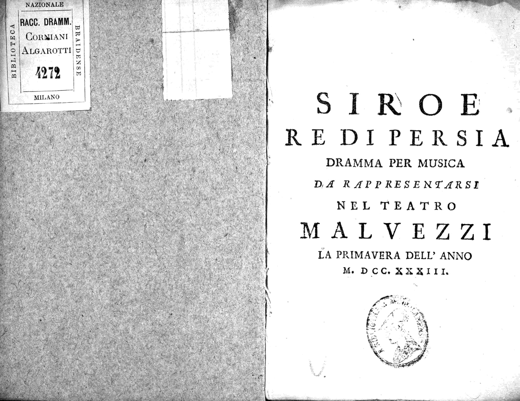 No chorus? from description @ RISM. RISM.info has much material pertaining to Hasse’s Siroe, including the 3-volume score above of a manuscript copy of the first version, many excerpts, etc.