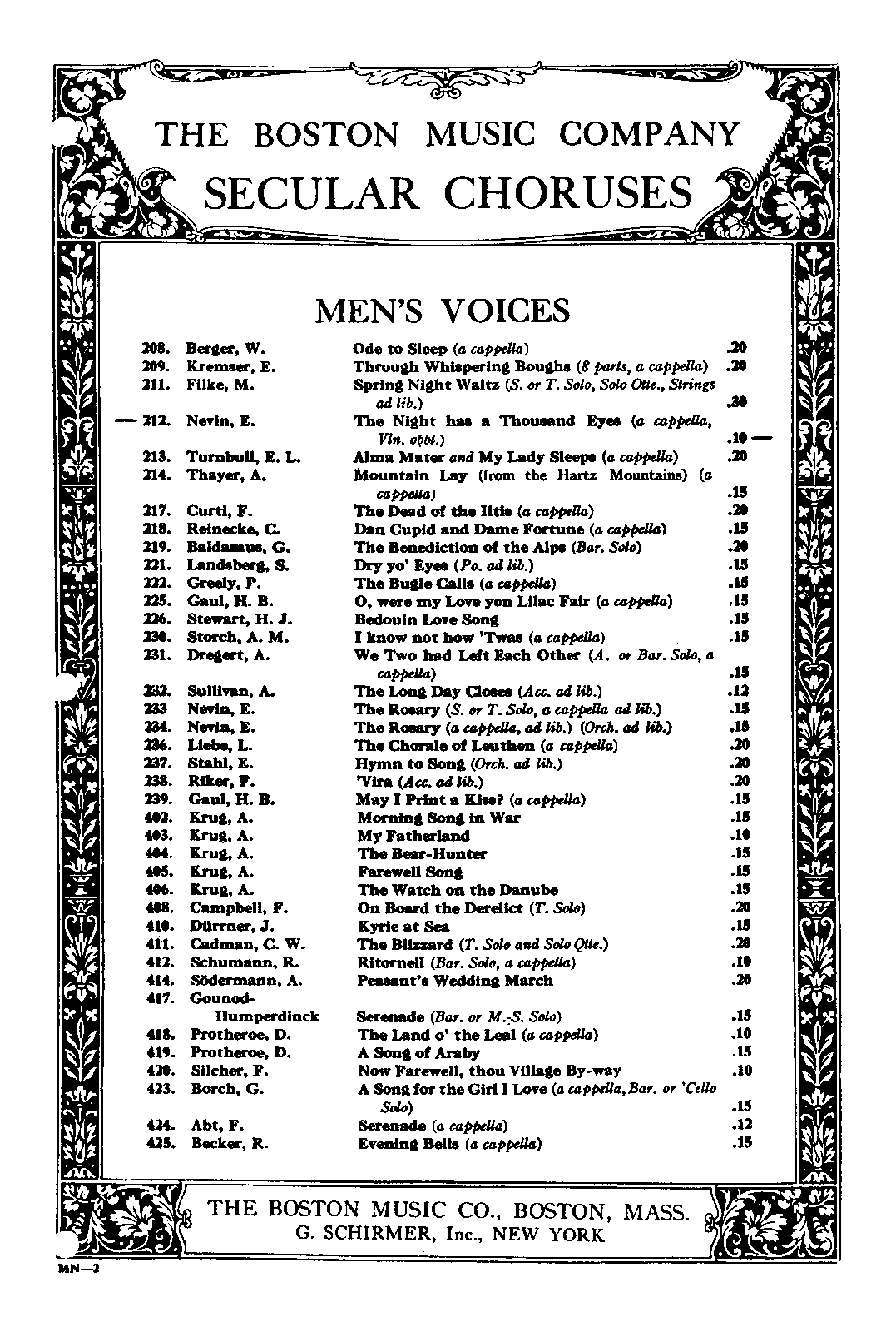 - 11. The Night Has a Thousand Eyes - song for mixed chorus (SATB) with violin obbligato