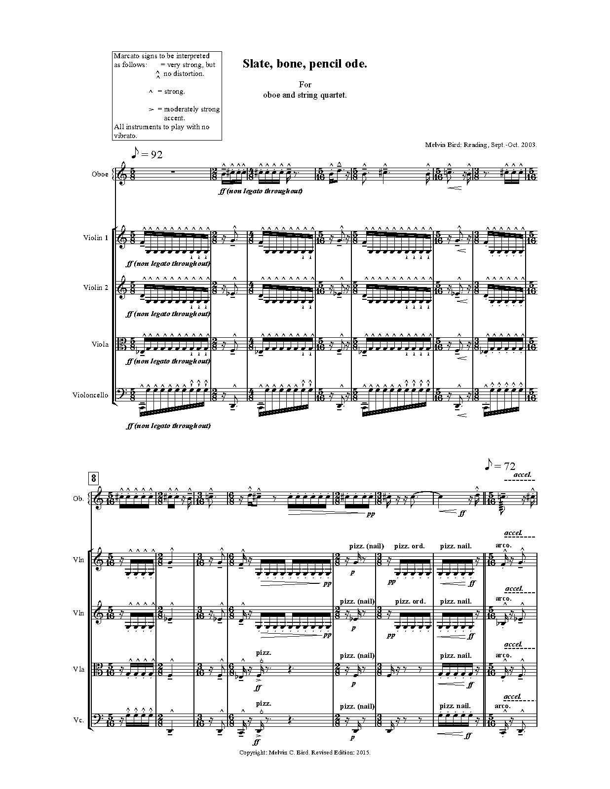 Melvin Bird has asserted his right under the Copyright, Designs and Patents Act, 1988, to be identified as the composer of this work. Please contact the composer for further information. The composer welcomes any performances and recordings. melvin.bird@hotmail.com. A clear and clean text.