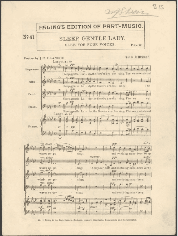 | Genre Categories | Glees; For 4 voices, piano; For voices with keyboard; |