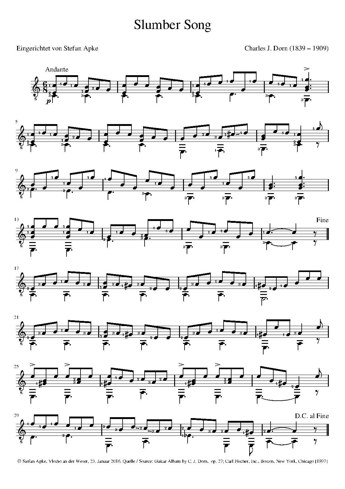 | First Publication | 1895 – New York: Carl Fischer Reprinted in 1897 in Guitar Album, Op.27 (No.1) |
