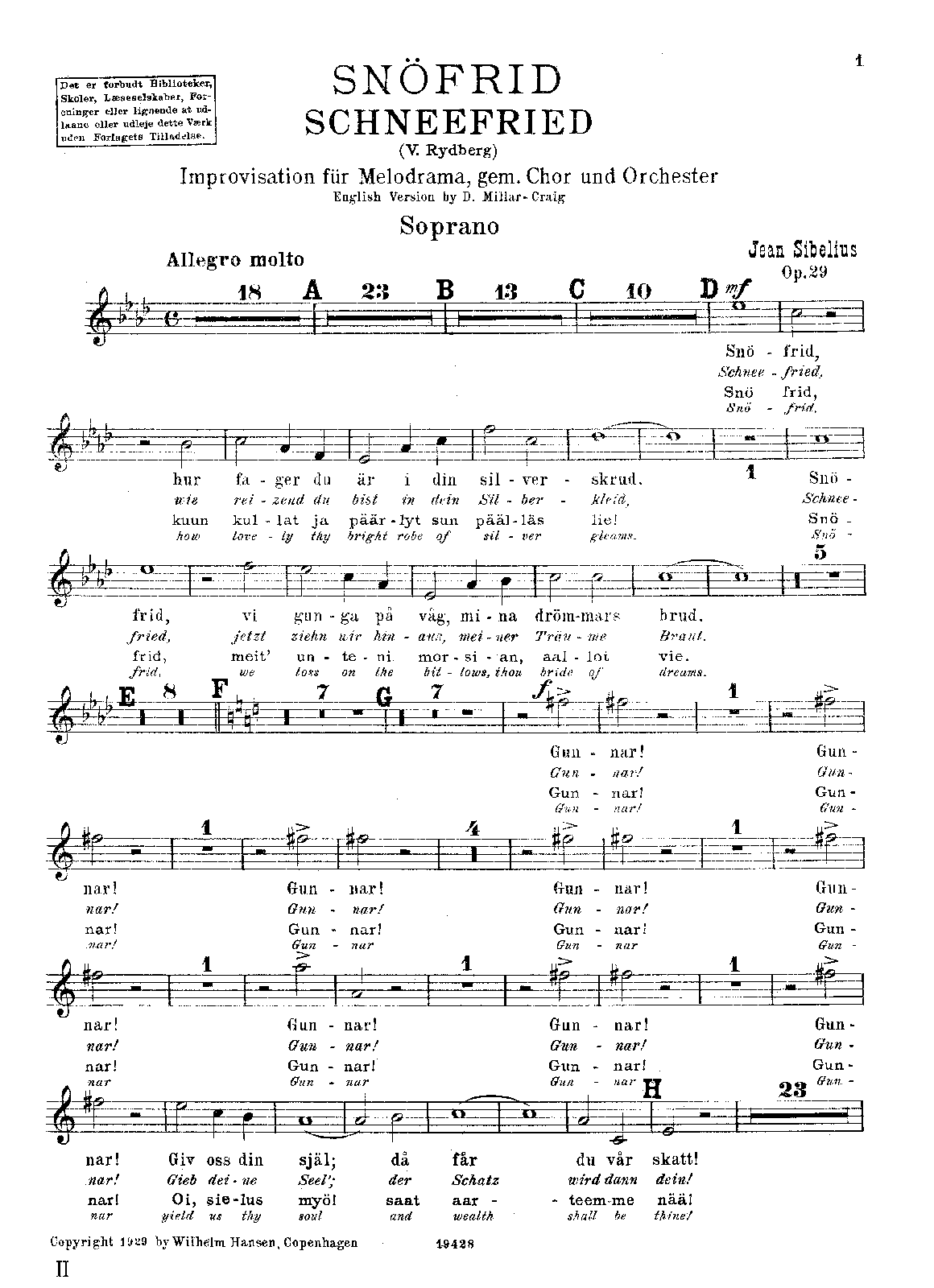 | Alternative. Title | Improvisation for Reciter, Chorus and Orchestra ; Schneefried = Snöfrid : improvisation für Melodrama, gem. Chor und Orchester |